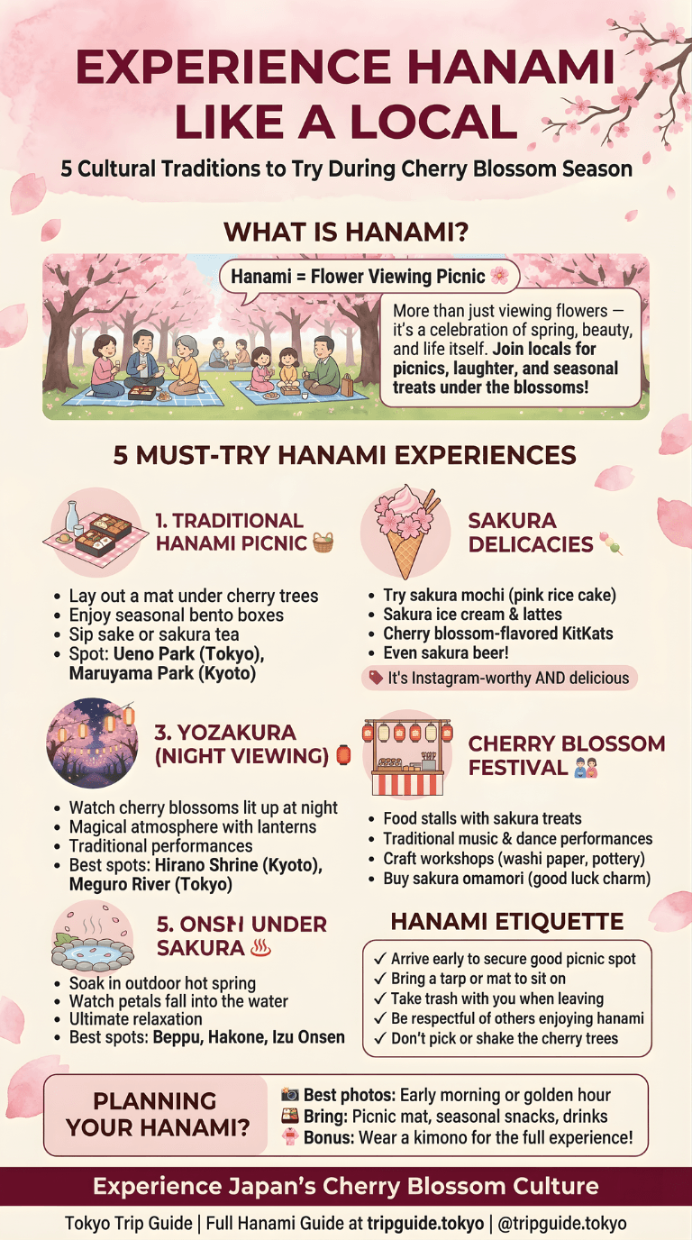 You don’t need to visit every famous spot. Choose one or two exceptional locations for a memorable half-day experience, then spend the rest of your time exploring Tokyo’s other attractions without cherry blossom tunnel vision.